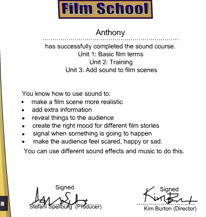 Hi everyone I learned about This film school and about how to make music with movies. it is cool I loved learning about different sounds in movies.